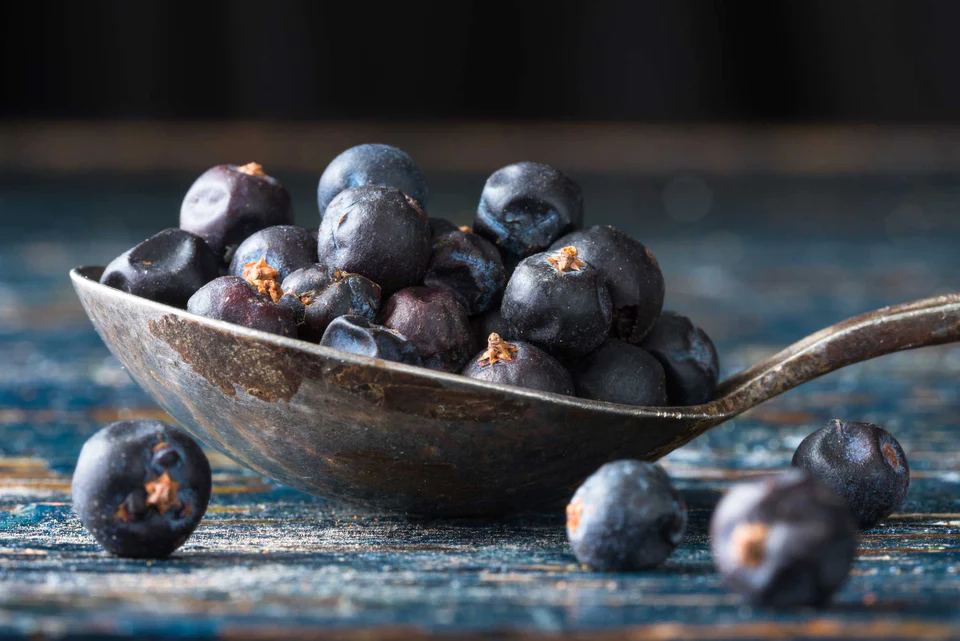Le bacche di ginepro hanno un gusto aromatico e resinoso con un sentore dolciastro-acidulo